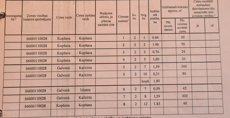 Nogabalu raksturojošajos rādītājos nav atspoguļota pēdējā veiktā mežistrāde. Pielikumā pievienoti nogabali, kuros tā ir veikta.