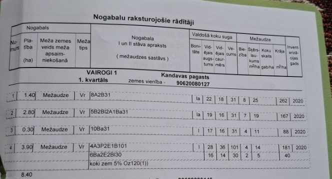 Meža platība:8.40 ha